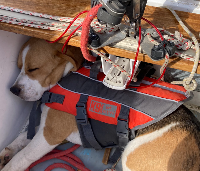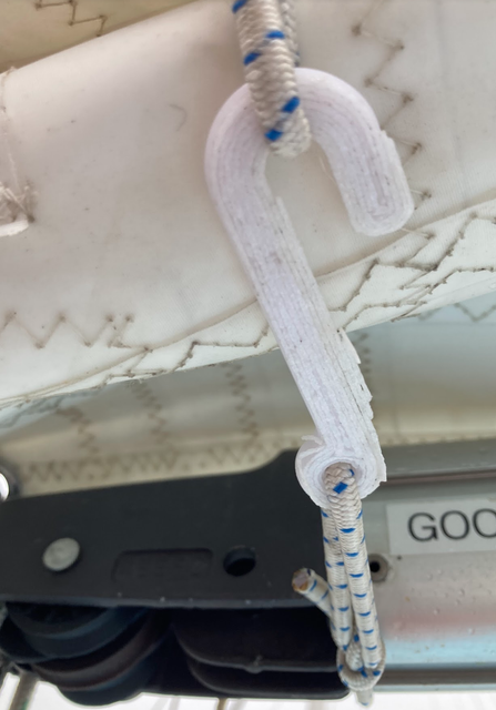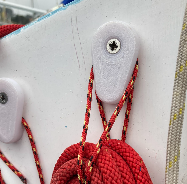 • Line hangers. I really like the ones from United Yacht Manufacturing. No holes required (they attached with a big patch of UHB tape). I couldn't design anything better.