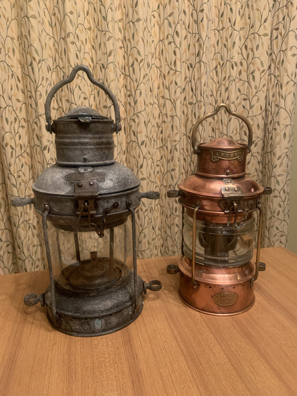 I have two Davey cone burner paraffin anchor lights, one is copper and too beautiful to take to sea and the other is galvanised and scruffy and goes to sea, but it gives only a feeble glimmer.