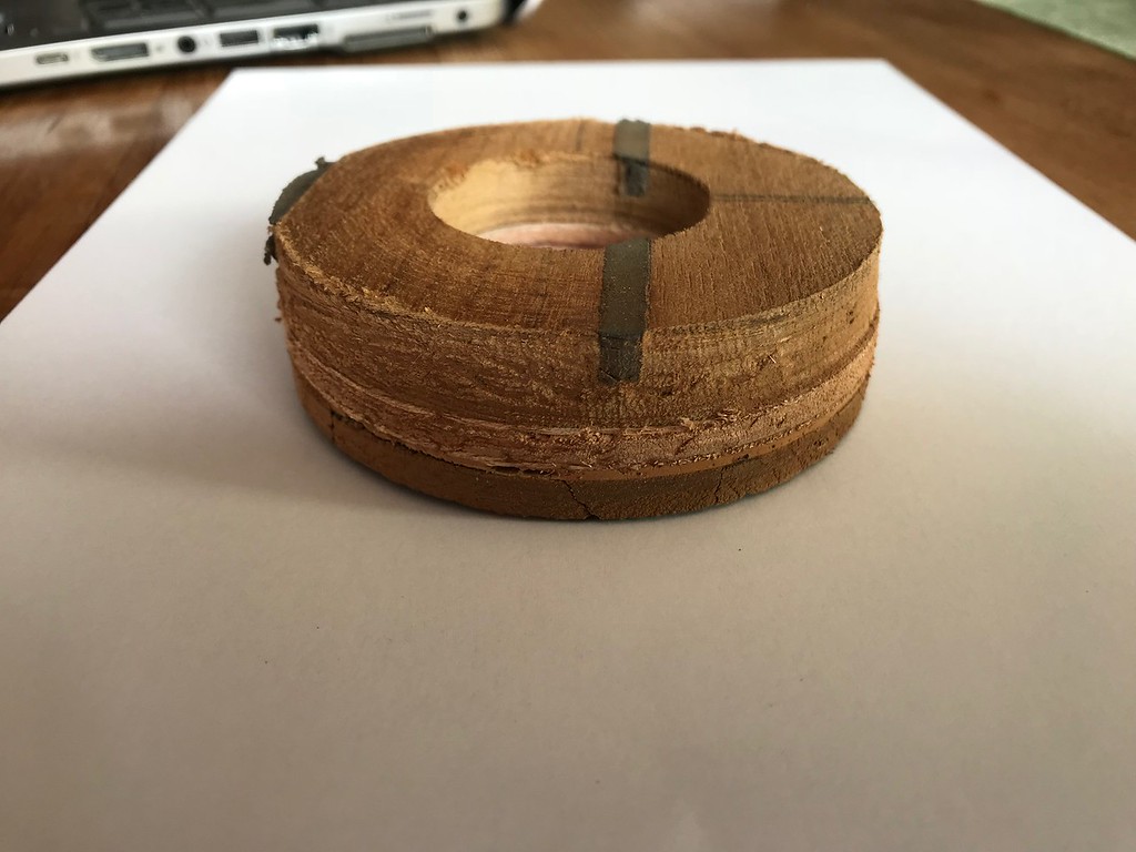 Actually the first version of the crew cabin porthole teak border, they just started to make them square, I was able to asc for round, right in time, at the same moment I asked for the honeycomp center plank on the bow, they intended to make all that straight, but were delighted to give it this signature.