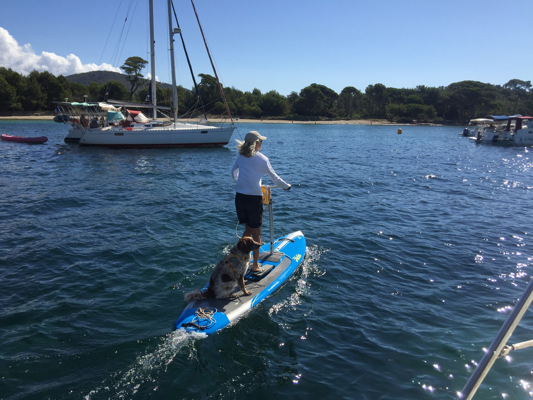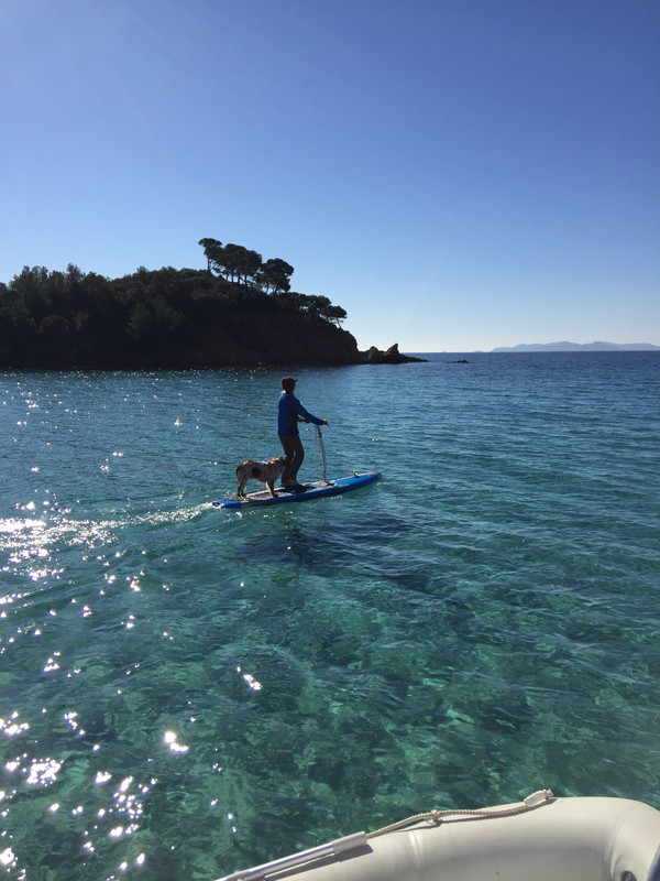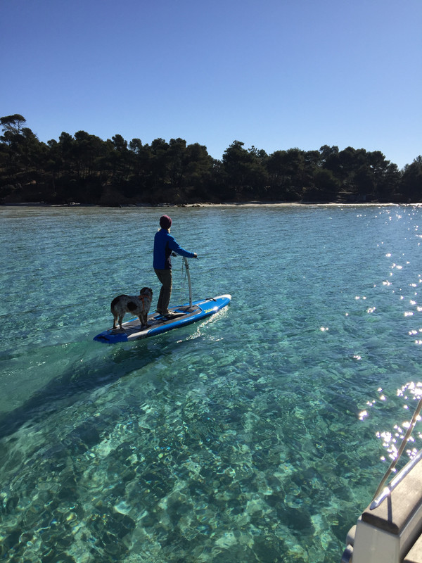 Ashore, I look after the dogs while she looks after me.