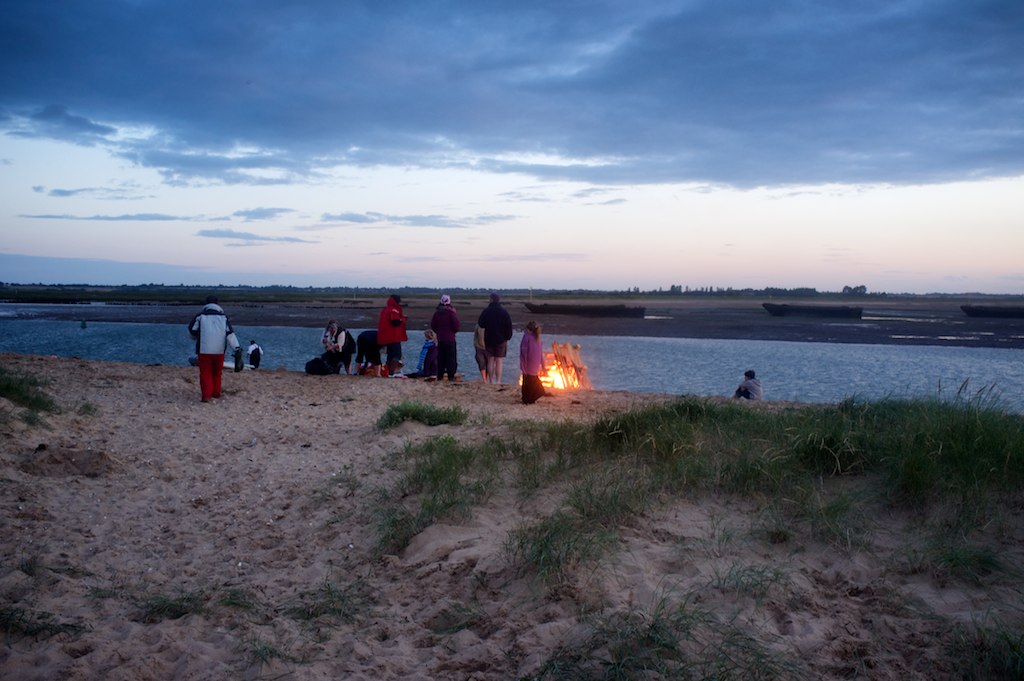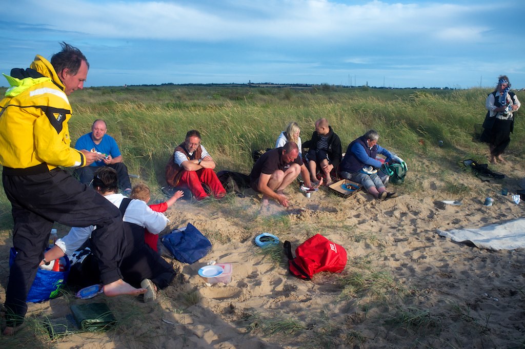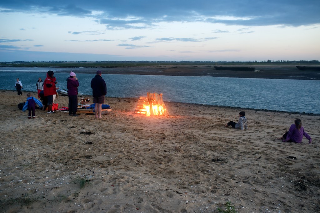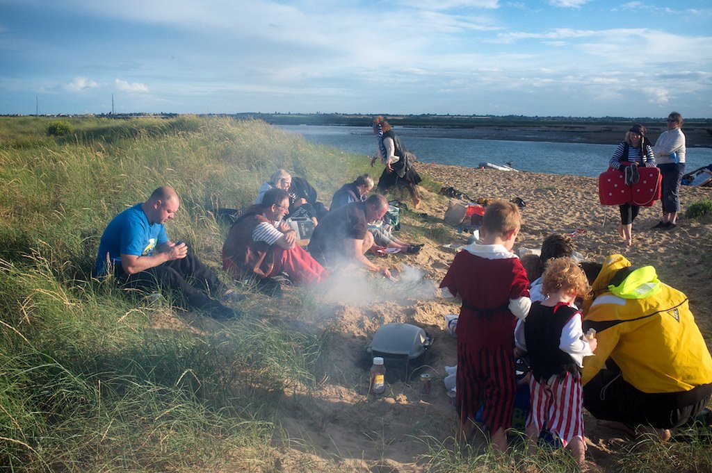 Me and my piratess crew had a great night sail up after at 3am departure from BoC. I navigated while PJ helmed into the Walton channel and she nearly pooped her knickers as we sailed in with .7 neath us. (but then, she is a solent softie). We picked up a buoy at 10am, had breakfast, a kip and then thumbed a ride from Wonderman Clive arriving on the beach at around 5pm. After a disastrous bbq attempt, we all managed to eat and share drinks and catch up with people and play sword fights with the little'uns. The spectular bonfire was lit at 9pm by PJ emulating the olympic torch relay (well, it was lit from the embers of the bbq). Simon and his crew played us songs, we sang, danced, celebrated with Barbican Bill when he did a lap of honour with a union jack to celebrate Jessica's Gold. It was all in brill. Thanks to Ian for picking a good weekend and for everyone who turned up and joined in.