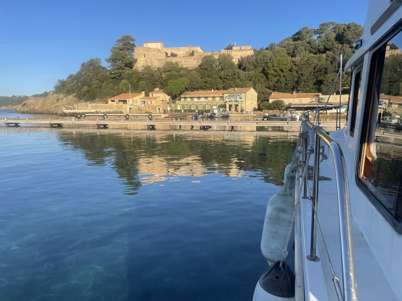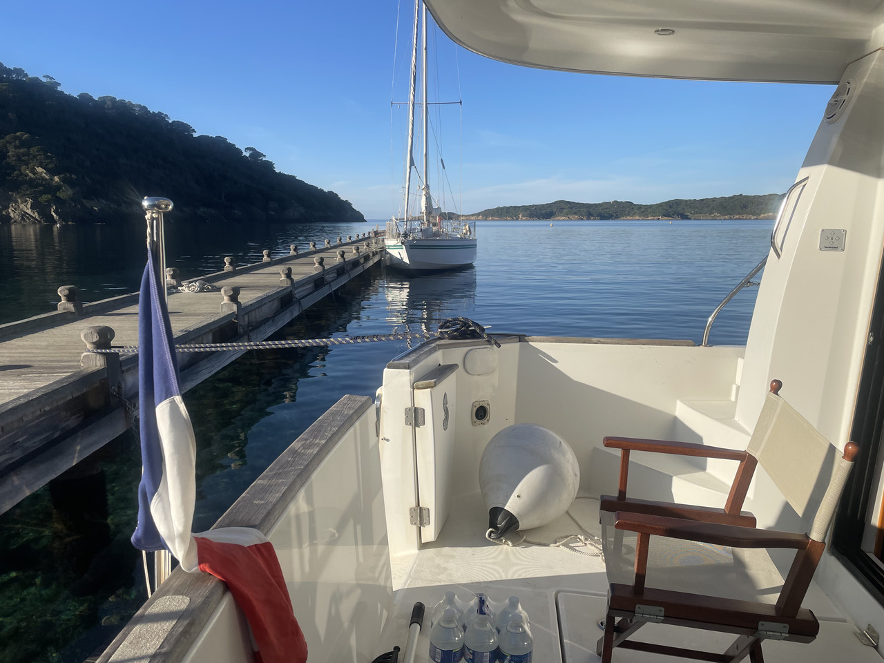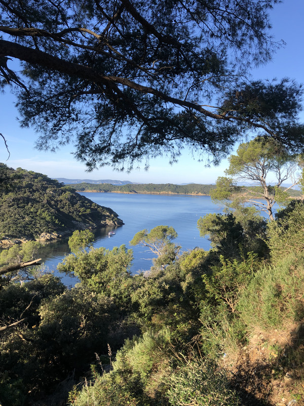So the plan is to get up early and hit the boulangerie and then go at day break....Port-Cros is the smallest of the three main islands of Porquerolles. It’s extremely beautiful and in summer resembles a tropical island....it’s very small and so is it’s harbour and places in port are limited, it’s a sunny clam day (according to the frequently wrong forecast) and a weekend to boot...so we have to see. It’s the centre of a Marine National Park so no anchoring is permitted....and all it’s restaurants will probably be closed...hence to rush to the bakers to get something for lunch...there’s no electricity on the quay and generators are forbidden (and I don’t want to fire up the gas stove)....you also can’t discharge any water into the bay...so brush your teeth into a bucket.