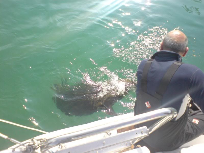 As we turned the corner to head up to Padstow the wind died a death so on came the motor and even a chance to catch a few mackrell to feed the seals in newquay harbour
