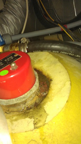 Q2: The port side water heater seems to have developed a leakage around the red box on top of it, I assume its the heater unit. Can it be repair or is it just to swap out the heater and put in a new one? Any one that knows the size in liters of the standard water heater fitted?