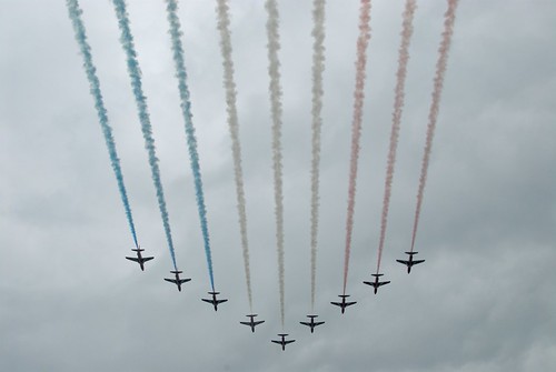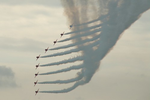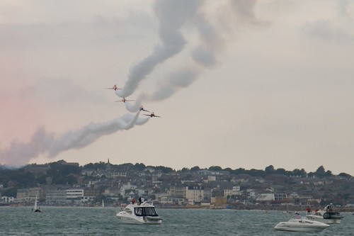 Anyone else go out to see the Red Arrows over Sandown Bay - for the White Air festival? We were anchored quite a way out, just around the corner from Whitecliff Bay and it felt like they were using us as a turning point. More photos to follow, but this gives the impression of how close they felt as they turned (and barrel rolled) directly over us.... (Click for larger version - not quite as sharp as I'd have liked, but given the conditions, not too bad)