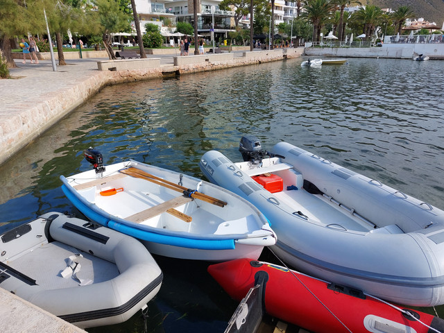 The good old wee stern anchor on a weighted line works to keep off the quayside or bumpy beach