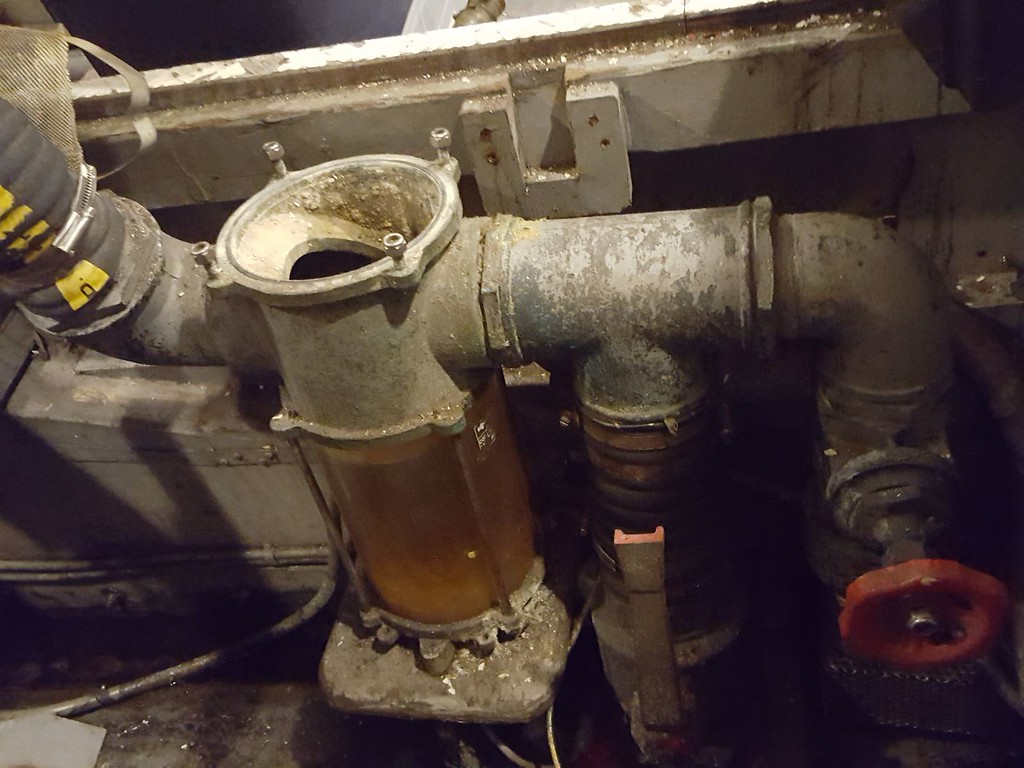 The seacocks “assembly” from the engines (through hull, strainer, valves, + extra deviation and valve for bilge pump out) don’t look corroded,