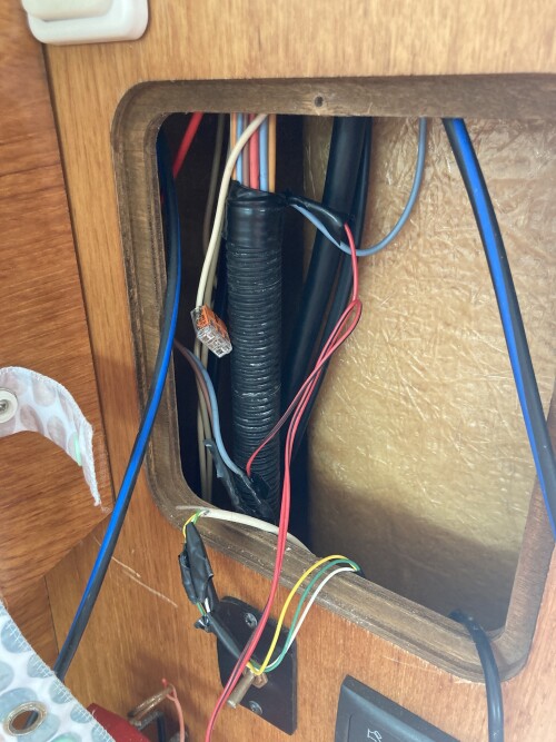 The butcher has actually cut into a bunch of the original Merry Fisher wiring looms in order to find a positive supply for his poxy CO2 detector