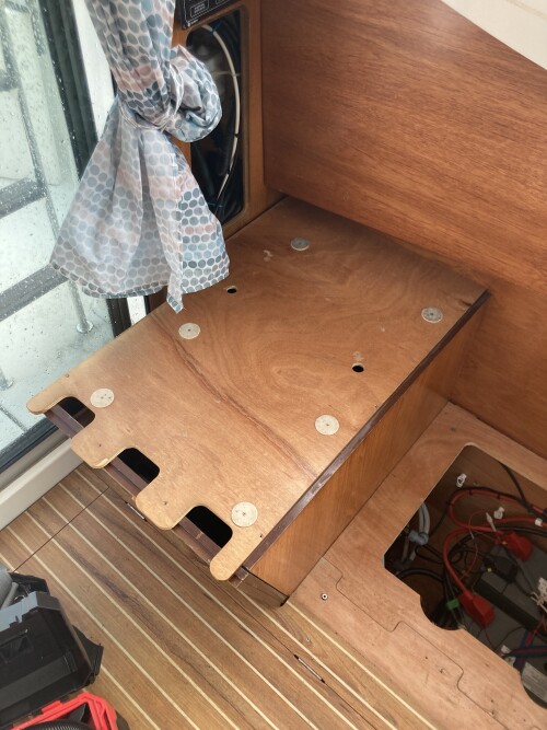 - Table leg base in the lazarette locker