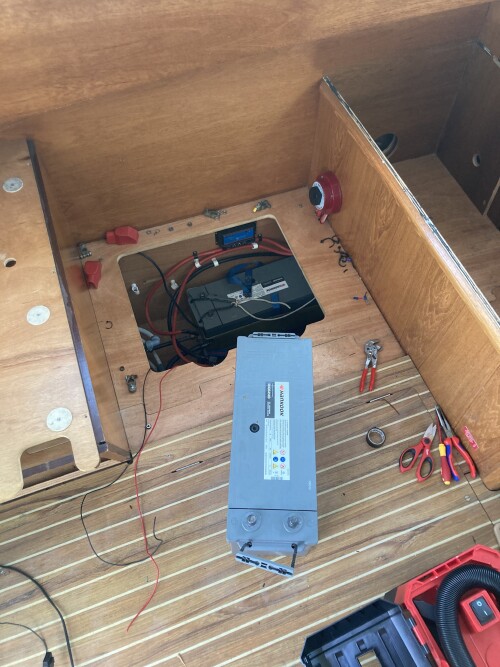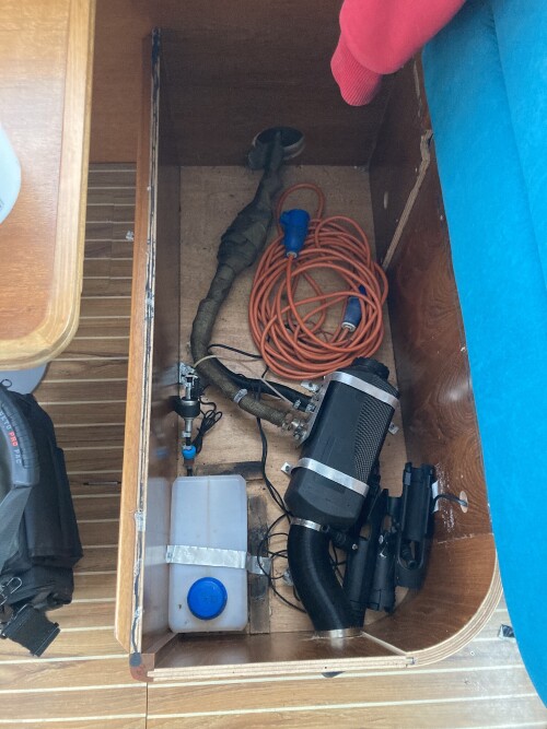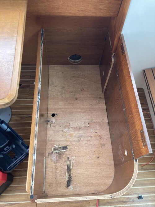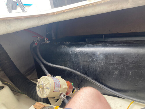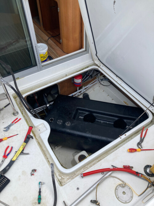 - Get rid of the black tank that takes up half the lazarette and move it under the bed where it should be