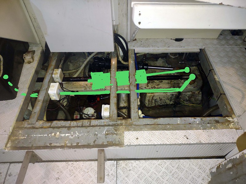 this drawing might explain what I had in mind with that specially shaped rudder connection rod, and the possibility to slightly move the hydraulic ram; more forward,