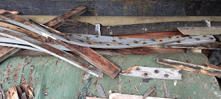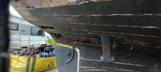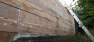 I was expecting a fair amount of problems in this end of the boat as it has had the most repairs over the years done to it and has lost some of the original shape. You can see from previous posts that the starboard side and aft deck s have been messed about and was not re-build correctly, in that the beam shelf and knees were not bolted back together once the repairs were made. So the next time I come up to Chance I am coming up with a lot of props and wedges put the shape back into the boat especially the transom. So watch this space for updates.