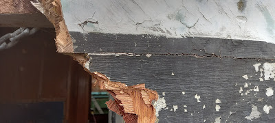 One bit if you can see it, is that the starboard side as dropped and the the sheer line shows that it as happened, so the starboard side is going to have to be propped up back into position until the sheer line back in the correct position