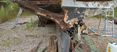 Starting on the transom and finding out the major repairs needed to be done before any work can be done to the planking