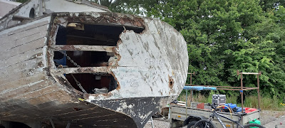 I regret I am not surprised by this news. When I had to lift Tiller Girl's deck I found quite enough of what you now report. I was fortunate though that I had caught her at that time - and that there were no 'repair' issues. Will that cause more problems that need to be resolved before you can stablise her for transport?