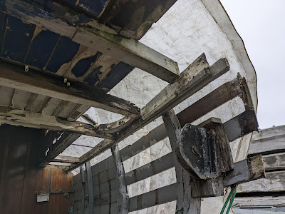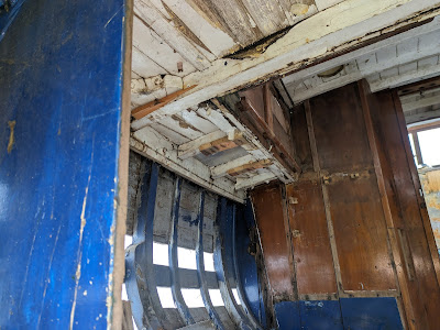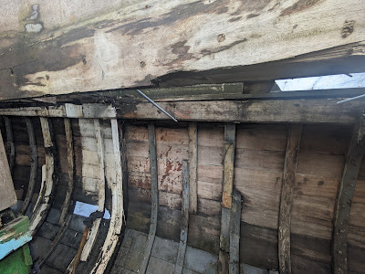 It will be good to get back to working Chance and Mai Star II again now that I have an extra pair of skilled hands and can help me with some of the more major tasks which lay ahead. The first job of both boats is to make up a list of priority jobs that need doing before any of work can get underway. in the case of Chance it will be to sort out the frames on the starboard side which are out of shape because of the beam shelf been not connected to the carlin and the whole area was unsupported for a long time. So there going to have to be a lot of extra shoring up to be done to bring that part of the boat back into shape . Once the hull is back in its correct position then the frames and ribs can go back in and the new beam shelf can be made and fitted and the tie rods can be made and fitted along with new deck beams along the starboard side deck and the aft deck beams replaced at the same time. So a lot of fun ahead over the Autumn and winter months to come.