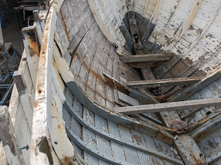 So far we have to renew five ribs and one frame before we can move on along the port side and replace further ribs and frames on that side of the hull, then we can turn our attention to the starboard side and do the same to that side of the hull.