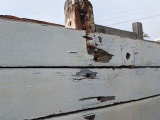 One of the jobs that needs doing is to remove all the old copper nails from the beam shelf where the new ribs have to go in from above and behind the beam shelf and down to where the ribs fit on to the hog.