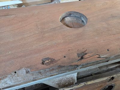 The foredeck beams and the mast pad nw in position and so that part of the restoration of the foredeck is now completed.