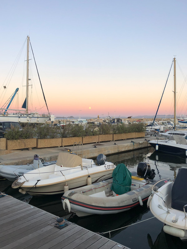 Where we are there is the infamous Mistral. It comes barrelling down the Rhône valley turns right and comes straight for us. There is a long peninsula called Giens which protects us (the first photo) but the other side is really windy and of course that is the windsurfing beach.It looks like a fairly windy day for you tomorrow. From Meteofrance. :