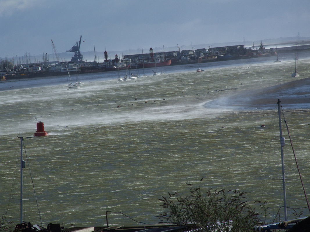 How about this one.... around 10.00 this morning .F10 gust turning the water to mist and spray all the way from the Fort in top corner, right downstream to Sheerness, 12 miles away in the far distance.Its just after low water and tide is not yet running hard,