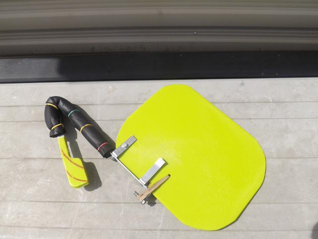 I made a sort of fixed rudder for my canoe as like many inflatables it does not track very well, particularly in any sort of stiff breeze. I cut up a plastic cutting board from the kitchen shelf of Asda. Made a world of difference to going in a straight line, even in a cross wind.