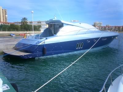 Seen in the Mar Menor with a couple of smaller 40ft jobs but with identical colours. Spainish yard?