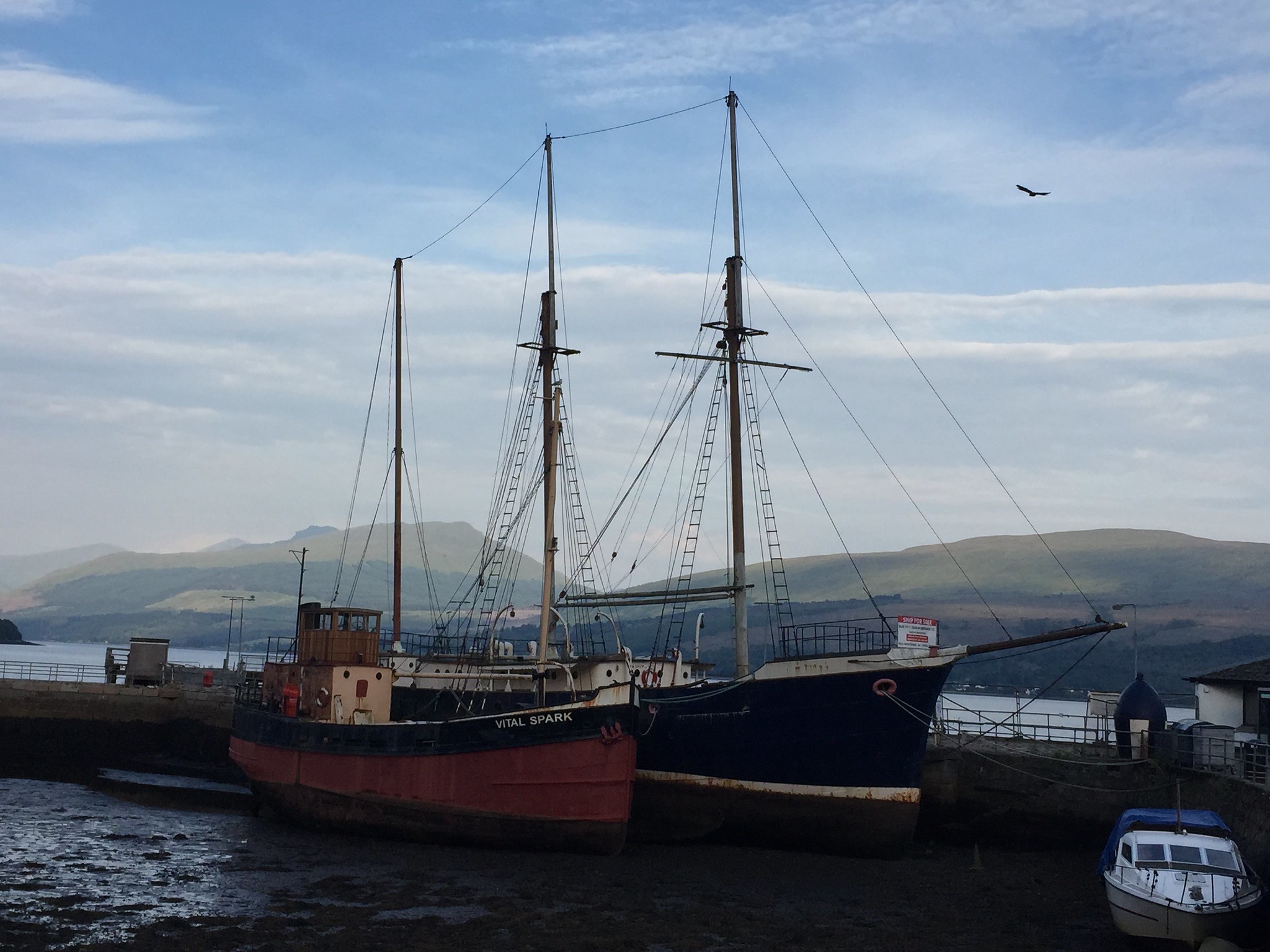 So, for a long time she sat in the same place, along side the pier, with a Clyde Puffer tied up behind her. Then one day she moved to the pier head (which is ruined and fenced off with warning signs of unsafe structure). This year she moved, don't know where she went.